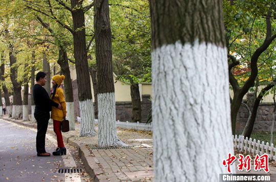 11月8日,立冬之后的青岛八大关景区,层林尽染色彩斑斓,景致盎然,吸引了不少游客前来观赏。中新社发 徐崇德 摄
