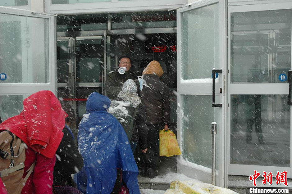 11月8日,新疆北部迎来今冬第一场雪,下午16时05分由奎屯发往襄阳的L158次棉农工专列从奎屯发车。为保证拾花工顺利返乡,奎屯车务段组织机关干部和车站工作人员,认真组织大雪天气下的棉农工进站上车工作。奎屯是新疆棉花种植基地,每年有大批拾花工进疆到这里“淘金”,为了组织拾花工运输,今年地处北疆的奎屯火车站和石河子火车站计划发送棉农工专列70列。王昆 摄
