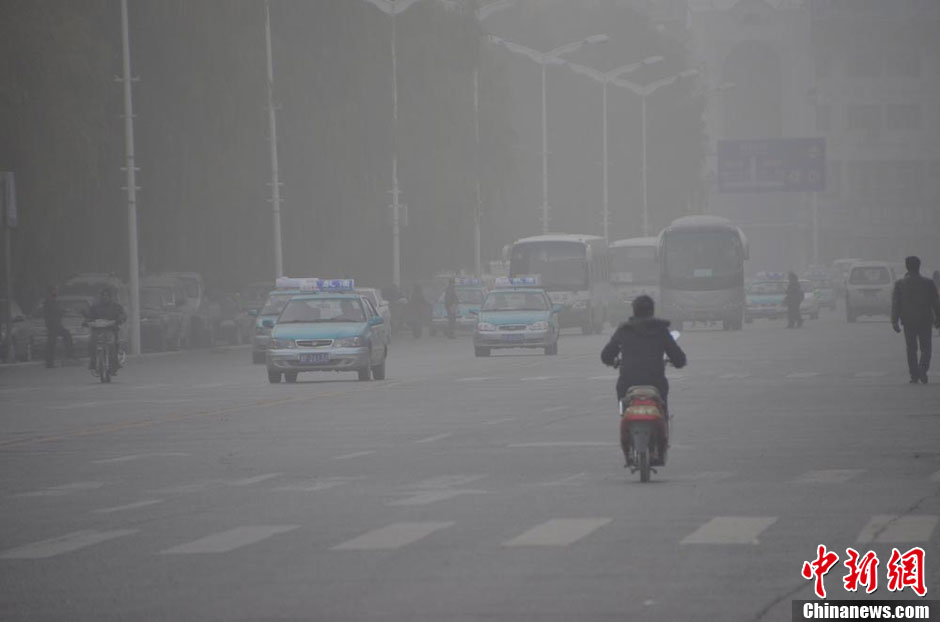 11月12日,甘肃酒泉玉门市城区笼罩在沙尘天气之中,给当地民众出行带来了很大不便。万宗平 摄