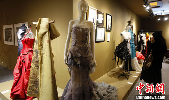 11月14日,中国嘉德年度秋季拍卖会预展接受观众参观,其中一个艺术设计专场中十余件国内外顶级时装时尚设计师的限量独件作品登陆拍场进行拍卖。这也开创了中国艺术品拍卖收藏市场的先河,可见中国内地拍卖行更加稳健的提升对各个收藏门类的藏家服务。中新社发 杨可佳 摄
