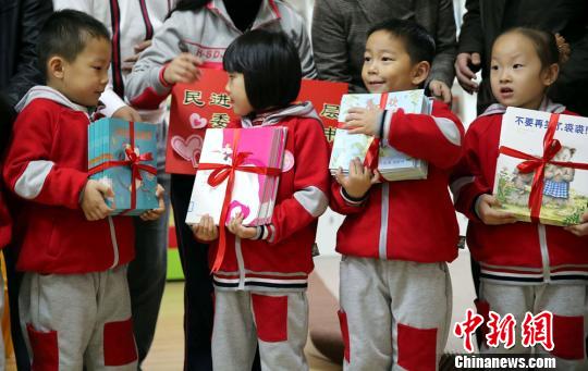 五爱实验新惠幼儿园的孩子们拿到崭新的图画书很开心。宦玮 摄