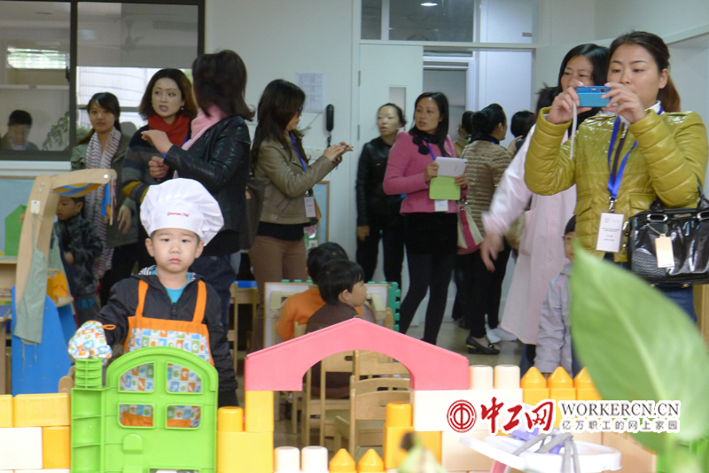 来自广西、新疆、黑龙江的老师们对上海市的“幼儿园一日活动组织和实施”尤为感兴趣,受制于教室面积、入园儿童多等条件因素,他们很难把“区角活动”推广,他们力求学习更多的游戏让孩子们在玩儿中建立健康的性格,学习知识。图为贫困县的老师们与上海的幼师在教室中交流,孩子们在进行晨间活动,各种玩具丰富了孩子们的世界。手牵手计划项目已经进入第二期的最后一阶段,这些贫困地区在项目的资助下有了设施先进、设计科学的幼儿园,现在他们为该地区老师进行培训,进一步帮助当地巩固其教师队伍力量,让更多孩子受益。中工网记者于宛尼摄