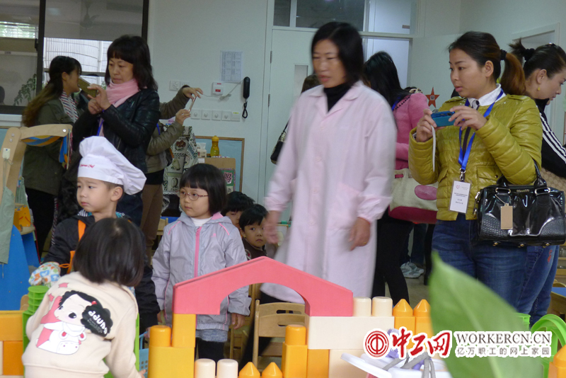 来自广西、新疆、黑龙江的老师们对上海市的“幼儿园一日活动组织和实施”尤为感兴趣,受制于教室面积、入园儿童多等条件因素,他们很难把“区角活动”推广,他们力求学习更多的游戏让孩子们在玩儿中建立健康的性格,学习知识。图为贫困县的老师们与上海的幼师在教室中交流,孩子们在进行晨间活动,各种玩具丰富了孩子们的世界。手牵手计划项目已经进入第二期的最后一阶段,这些贫困地区在项目的资助下有了设施先进、设计科学的幼儿园,现在他们为该地区老师进行培训,进一步帮助当地巩固其教师队伍力量,让更多孩子受益。中工网记者于宛尼摄