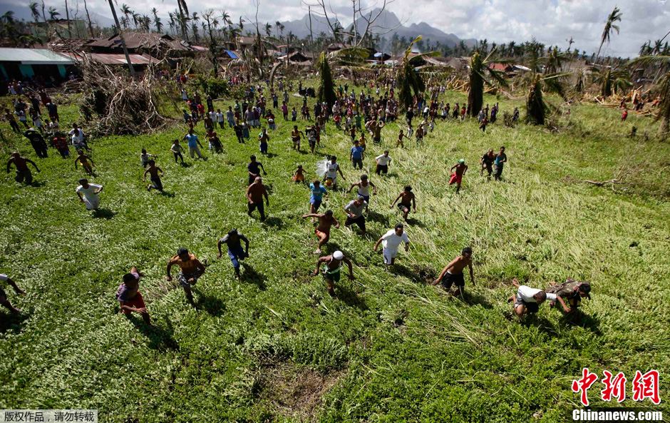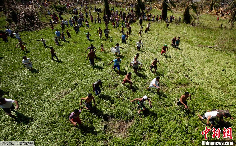 当地时间2013年11月15日,菲律宾塔克洛班南部La Paz,菲律宾空军向灾区空投物资引发民众抢夺。据菲律宾社会福利部提供的数据,强台风“海燕”侵袭菲律宾已造成4000余人遇难,另有92万人流离失所,灾民人数总计达1180万人。