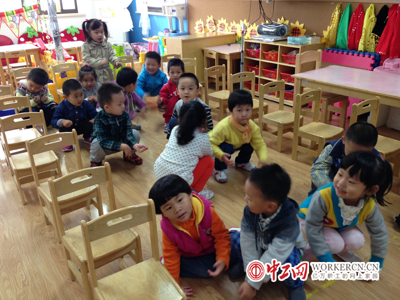 中班小朋友已经可以根据老师弹奏的音乐韵律辨别“欢乐与悲伤”、“幸福与恐惧”。图为孩子们听到老师的琴声后,模仿害怕的样子。“手牵手计划”项目由诺基亚(中国)投资有限公司、中国社会福利基金会、儿童乐益会共同开展。中工网记者于宛尼摄