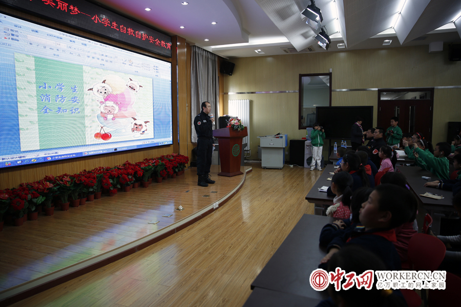 11月21日,蓝天救援队的叔叔们走进到芳草地国际学校日坛校区开展了“美丽芳草美丽梦----小学生自救自护安全教育”的活动。本次活动的主讲人是五(4)班郭子辰同学的爸爸—郭叔叔与他的两名队友。本次活动的第一个主题是——火灾,这个主题主要是帮助大家总结自护知识,提高学生自防自救知识与能力。   ( 王嘉禾 张睿/文   刘云鹏/摄)