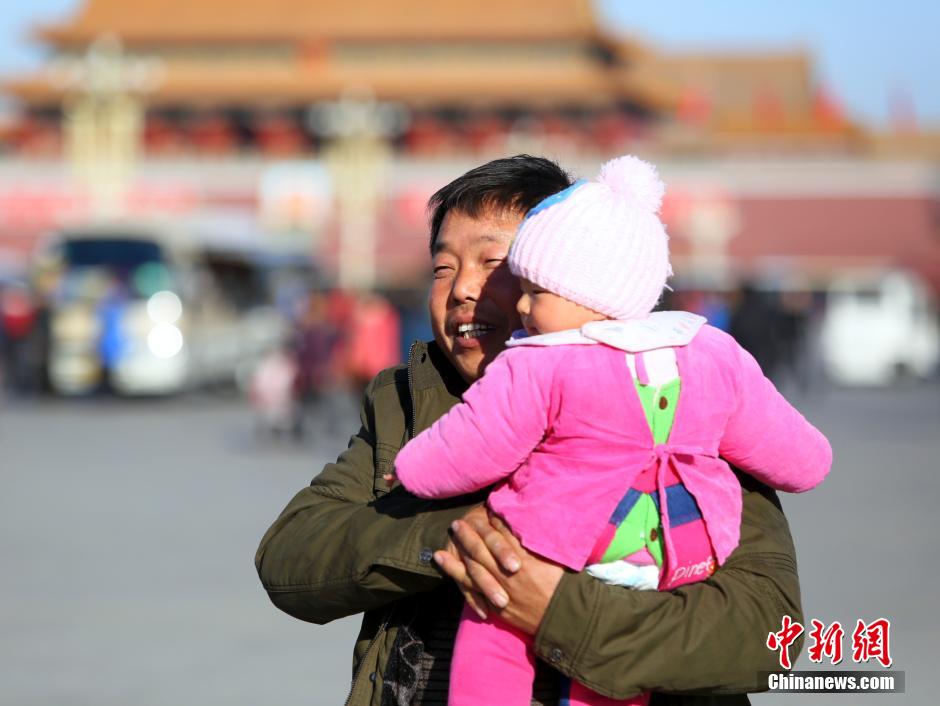 11月26日,民众在天安门广场游览,北京当日最高气温只有7℃。中新社发 李慧思 摄