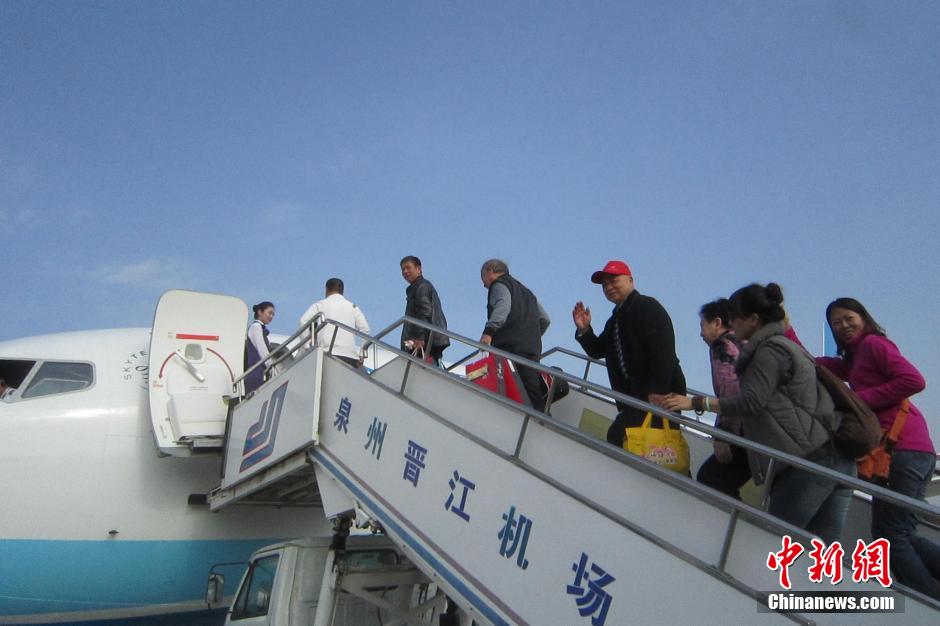 11月26日,载着158名旅客的MF859航班从泉州晋江机场起飞,直航台北桃园机场。据了解,由厦门航空公司执飞的泉州—台北航线,单程时间约1小时30分钟,每周二、日各有一个往返航班。中新社发 孙虹 摄
