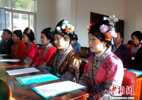 11月28日,广西融水苗族自治县第五期苗歌培训班在该县拱洞乡举行,苗族歌手们与老师在课堂上讨论苗歌技能知识。石峰 摄