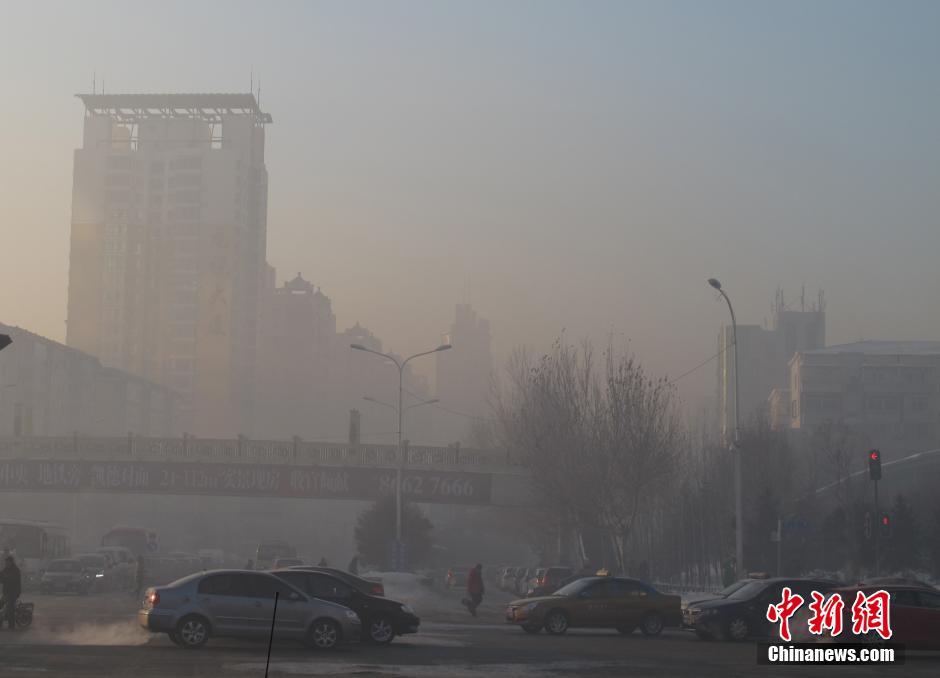 清晨哈尔滨局部地段烟雾缭绕