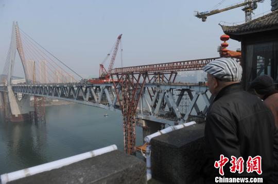 千厮门嘉陵江大桥正式合龙,大桥为跨江公路和轨道交通两用桥,设计为单塔单索面部分斜拉桥。据介绍,大桥主体完工预计将在年内完成。