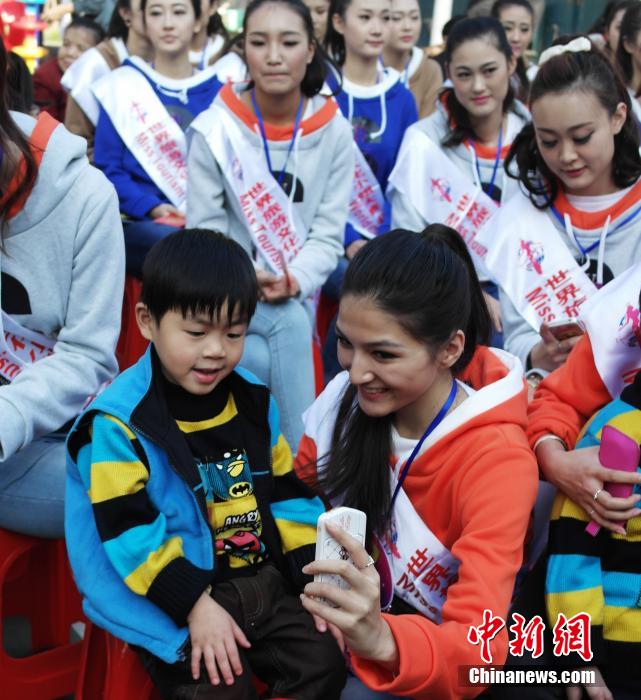 12月2日,前来长沙参加2013世界旅游文化小姐大赛中国总决赛的40位佳丽,集体赴长沙市第一福利院开展爱心行动。图为佳丽与孩子们互动。唐小晴 摄