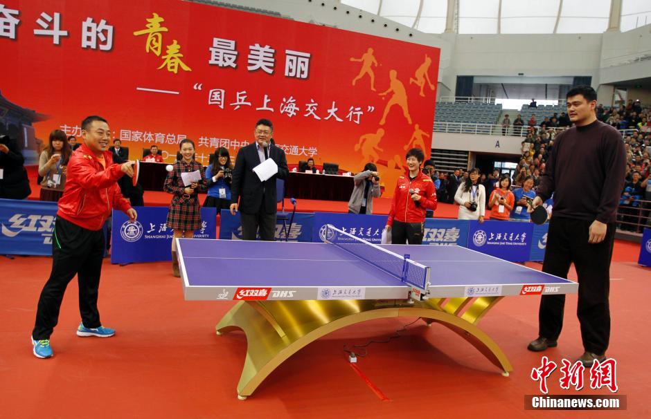 姚明在上海与乒乓世界冠军“过招”