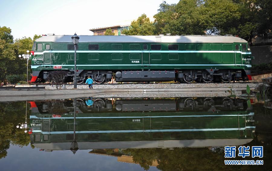 中南大学铁道学院内拍摄的东风型内燃机车(12月4日摄)。为纪念原长沙铁道学院组建60周年,三节“古董级”火车头近日被安放在位于长沙的中南大学铁道学院内。三节火车头分别代表中国火车发展史上曾经历的蒸汽机车、内燃机车、电力机车的几个阶段,浓缩了新中国机车发展的历史。新华社记者 李尕 摄