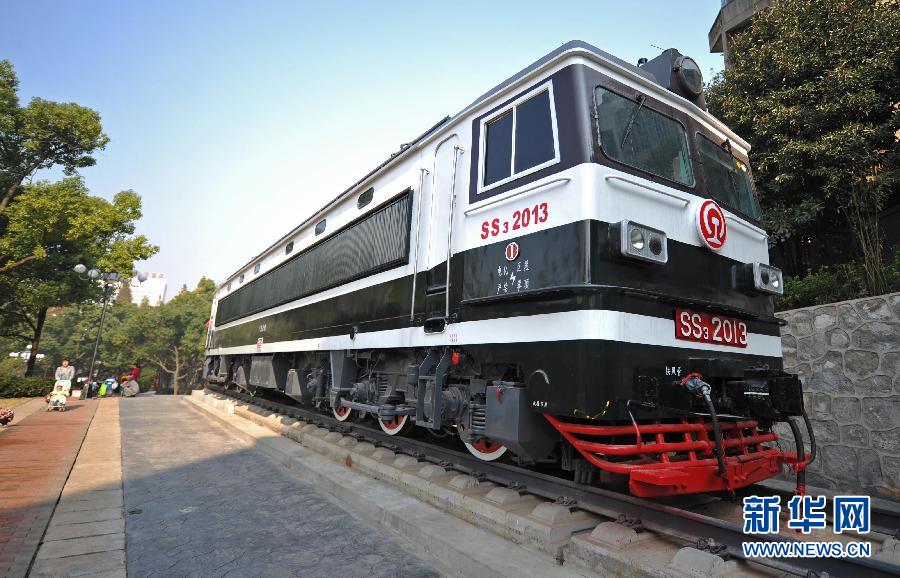 中南大学铁道学院内拍摄的韶山型电力机车(12月4日摄)。为纪念原长沙铁道学院组建60周年,三节“古董级”火车头近日被安放在位于长沙的中南大学铁道学院内。三节火车头分别代表中国火车发展史上曾经历的蒸汽机车、内燃机车、电力机车的几个阶段,浓缩了新中国机车发展的历史。新华社记者 李尕 摄