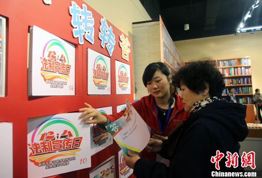 12月4日,市民在参与法制宣传日的答题活动。中新社发 韩海丹 摄