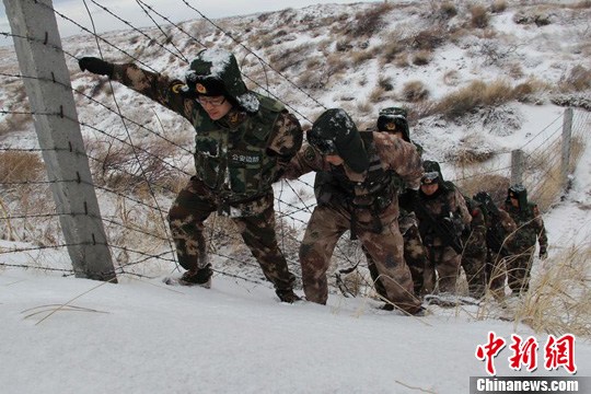 新疆边防官兵冒严寒巡逻边境