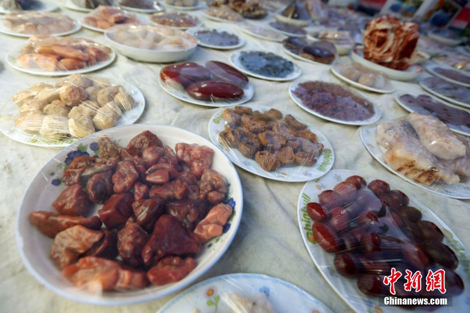 12月9日,在南京举办的奇石展上,一桌石头宴格外吸引参观者的目光,108道用各种天然石头组成的“菜肴”令人垂涎,从“肉类”到“蔬菜”、从“凉菜”到“炒菜”一应俱全。泱波 摄