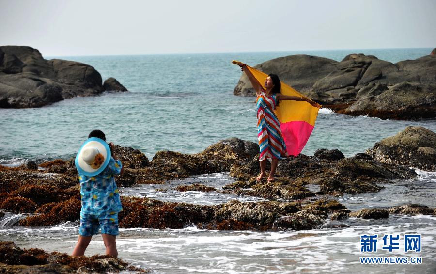 12月10日,游客在海南省三亚市海边游玩。目前,海南冬季旅游迎来旺季,海南的蓝天白云,椰风海韵让游客们流连忘返。 新华社记者 赵颖全摄
