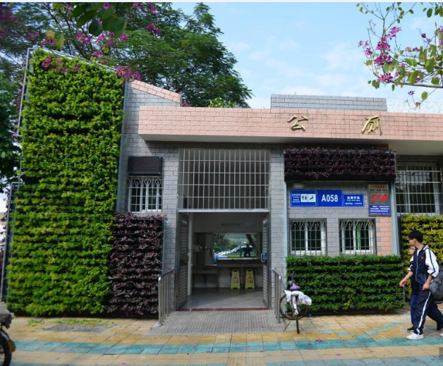 12月7日,厦门体育中心附近的公厕外墙密密麻麻地挂满了小花盆,让人眼前一亮。据了解,厦门市绿化管理中心近期对3个试点公厕的墙面进行垂直绿化改造。垂直绿化选取了红贵妃、红花仙草、鸭仔草等多个品种的植物,通过对墙面进行壁面绿化,可以缓和建筑的生硬度。吕明 摄
