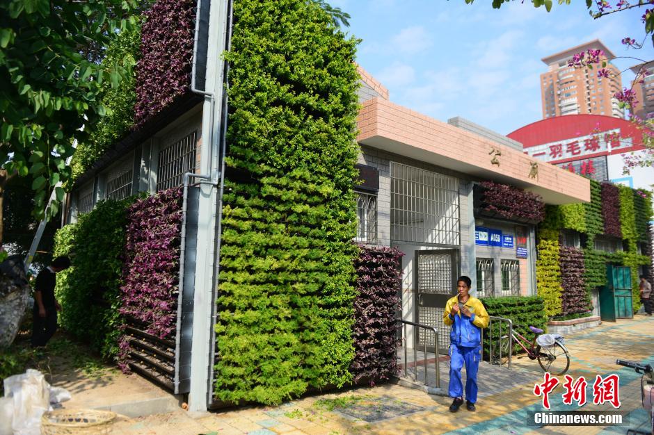 厦门植被公厕亮相 外墙挂满小盆栽