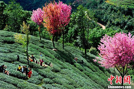 近日,全国大部份地区遭寒流突袭,但在云南省南涧县无量山樱花谷却是另一番景象,千棵冬樱花竟相怒放,吸引众多游客前来观光赏花。中新社发 李一波 摄