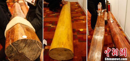 12月12日,一批黄花梨、紫檀、金丝楠木原木登上嘉德四季36期拍卖会。中新社发 杨可佳 摄
