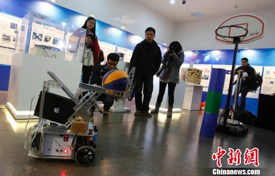 图为:学生与跳舞机器人展开对话。汤彦俊 摄