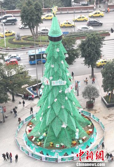 图为重庆商圈摆巨型圣诞树吸引市民。周毅 摄