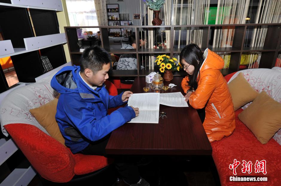 12月12日,在山西中北大学,一间由在校学生经营的自习室吸引了众多备考一族。这间自习室装修精良,设有雅座,学生可以免费进入学习,自习室只提供茶点等饮品消费,被学生们称作“土豪”自习室。韦亮 摄