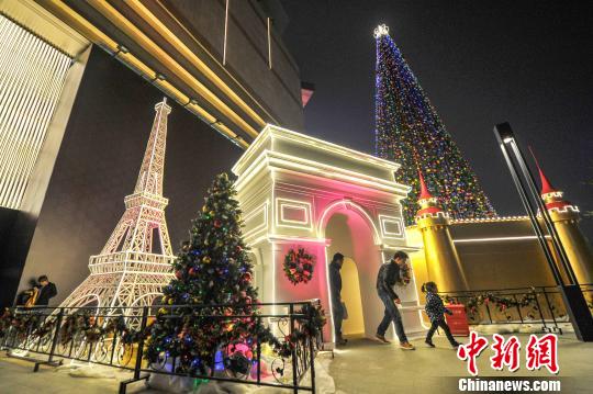 12月12日,广西南宁,一些商场早早在街头立起圣诞树,给城市增添了许多节日氛围,同时也借此吸引顾客赢得商机。