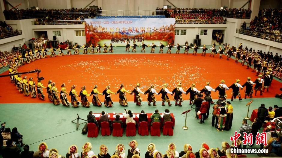 12月12日,四川阿坝州理县举办藏羌锅庄及家庭文艺大赛,来自全县13个乡镇的17支参赛队伍约2000人次现场进行PK。作为理县2013年年末最大规模之一的群众性文体活动,藏羌锅庄大赛结集了众多草根明星阵容参加。中新社发 封习虎 摄