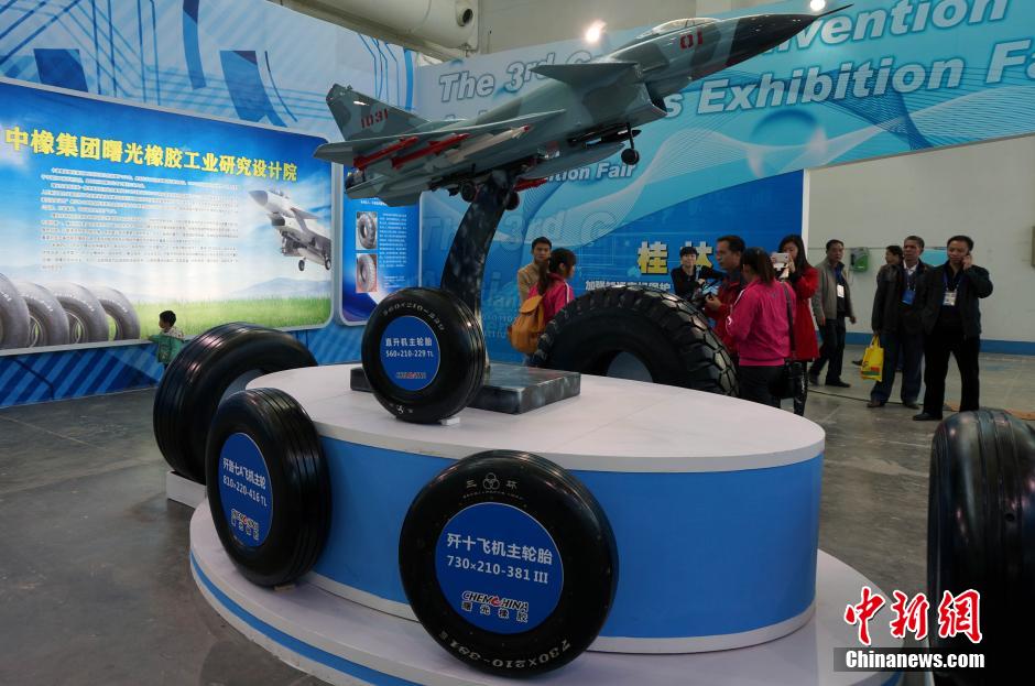 11月29日,3个直径为3.55米和3.60米的巨型轮胎亮相第三届广西发明创造成果交易会。11月29日,约1500项发明创造成果亮相广西桂林市国际会展中心,拉开了第三届广西发明创造成果交易会的帷幕,这场科技盛宴将持续至12月2日。其中专利项目约1200项,传统手工业创新项目约350项,中小学生发明创造项目约100项。中新社发 欧惠兰 摄