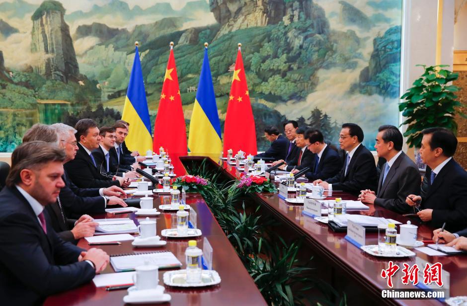 12月6日,中国国务院总理李克强在北京人民大会堂会见乌克兰总统亚努科维奇。中新社发 刘震 摄