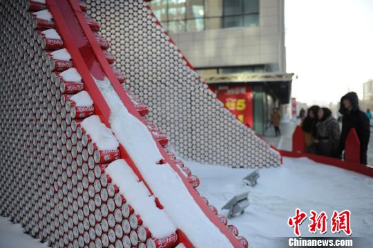 巨型圣诞树是由近5万个易拉罐瓶子制成的 张瑶 摄