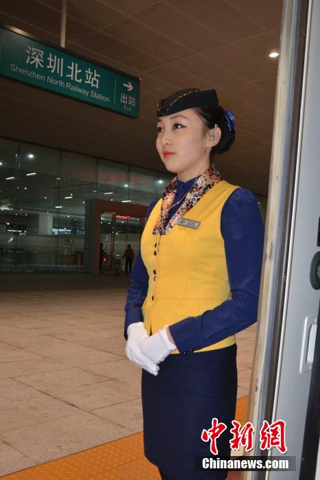 12月17日,记者登上厦深铁路试运行列车,全程体验闽粤千里“一线牵”。全长502公里的厦深铁路即将开通,该铁路连接中国福建、广东两大侨乡,串起深圳、汕头、厦门三大经济特区,是中国“四纵四横”快速客运网中一纵——东南沿海铁路的重要组成部分,设计时速250公里。图为夏深列车上的列车员。中新社发 郑小红 摄