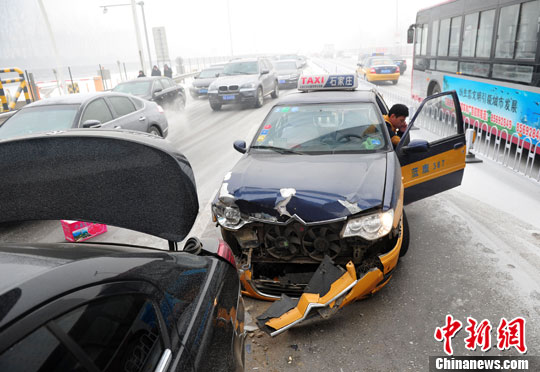 12月19日,河北石家庄因能见度低,加上道路湿滑,各种车祸频发。中新社发 翟羽佳 摄