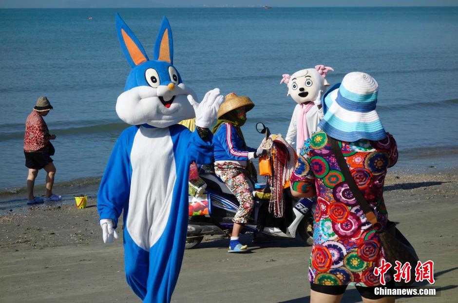 2月1日,拎着大包小包的游客抵达海南三亚,准备过一个“火热”的马年春节。中新社发 杜洋 摄