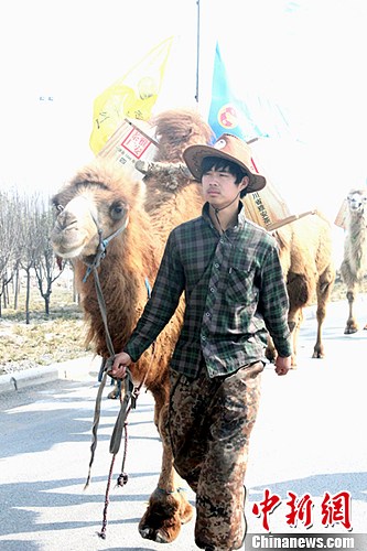11日,由内蒙古二连浩特市政府、内蒙古茶叶之路研究会等共同发起的“重走茶叶之路”驼队向河南郑州挺进。这支驼队自2013年4月起,行走湖南、湖北、河南、山西、河北、北京、内蒙古等地,途经100多座城镇,经过近一年的风餐露宿、艰苦跋涉,当日抵达河南省会郑州。离开郑州后,驼队将继续徒步北上,最后返回到内蒙古,由驼队转换成车队,载茶行走蒙古、俄罗斯、德国、法国等11个欧亚国家,到达终点法国巴黎,并应邀参加巴黎“世界茶叶大会”。