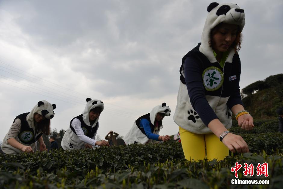 四川采茶女扮熊猫采天价“熊猫茶” 一斤最贵22万元