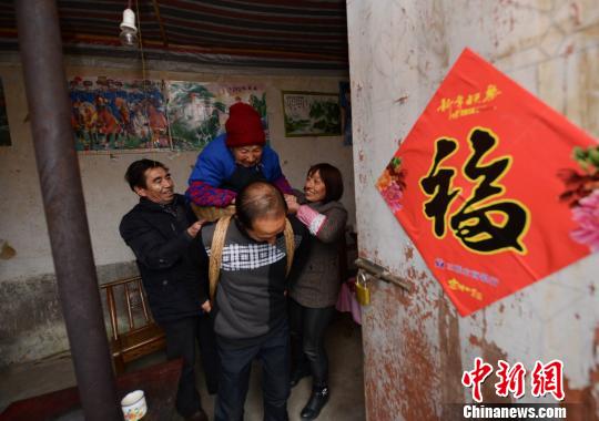 三儿子向明军和媳妇护送母亲来到弟弟向明迁家中 王永胜 摄