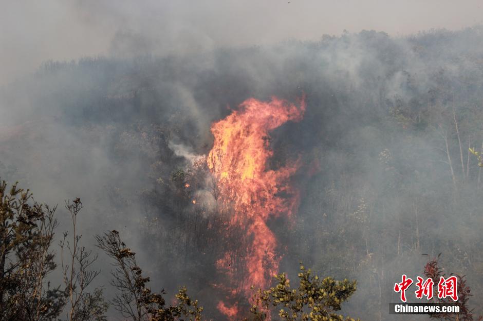 3月12日1时30分,云南省楚雄州禄丰县勤丰镇发生森林火灾,截止13日17时36分,大火仍未扑灭。据云南省森林防指消息,目前火场分为东、南、西、北四条火线,南线和西线的火势已经得到基本控制,过火面积约60公顷,整个火场参加扑救人数达到3895人。图为大火肆虐(摄于3月12日)。中新社发 朱家旭 摄