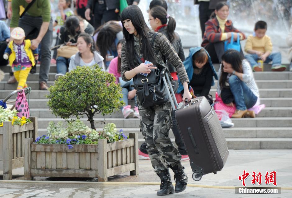 3月16日,武汉暖阳高照,气温一路攀升高温突破20℃。街头不少美女穿着时尚,成为早春武汉街头的一道靓丽风景线。中新社发 张畅 摄