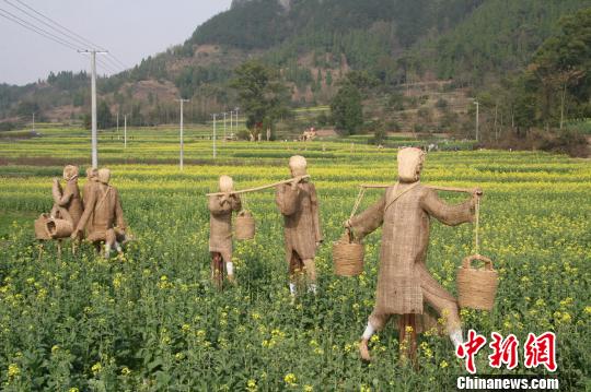3月18日,2014仙居·第七届浙江油菜花节开幕,造型独特的稻草人成为亮点。据悉,仙居县是浙江著名的油菜花景观基地。当天展出了动漫卡通类稻草人100多个。