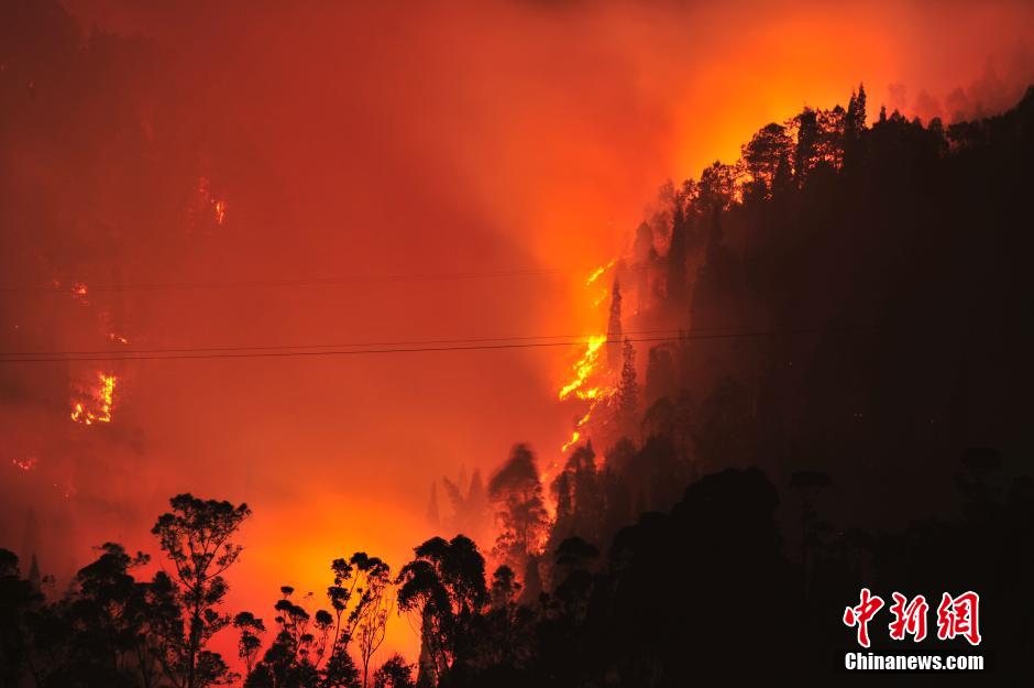 3月18日,西昌森林大火映红了夜晚。中新社发 蒋志明 摄