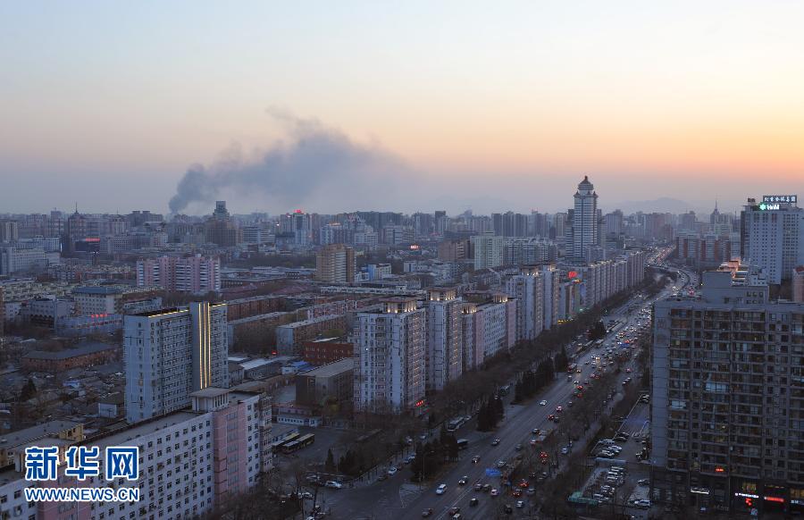 这是火灾现场冒出的浓烟(3月22日摄)。 3月22日,北京丰台火车站附近发生火灾,现场冒出滚滚浓烟。 新华社记者 郭昱 摄