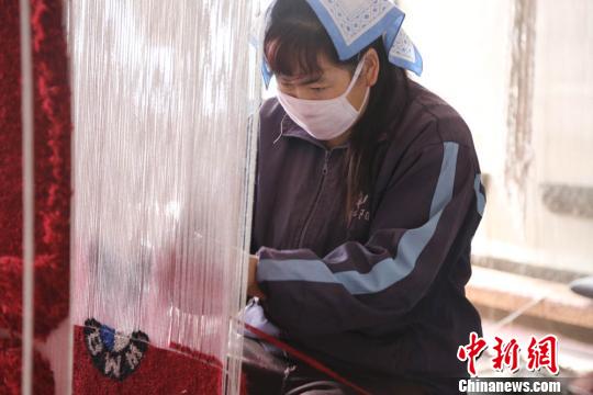 3月23日,中新网记者在甘肃静宁县走基层采访时发现,一作坊内七八位女工正在娴熟的手工织汽车座垫和脚垫。刘玉桃 摄