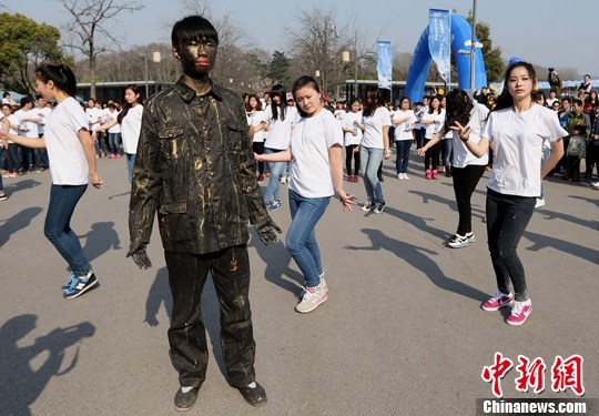 这位“活体雕塑”也来凑个热闹。泱波 摄