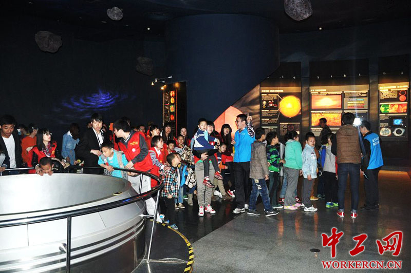 北京天文馆的科普志愿者以最为通俗的、形象的讲解向孩子们反复介绍着这里的知识。中工网记者 葛姗 摄