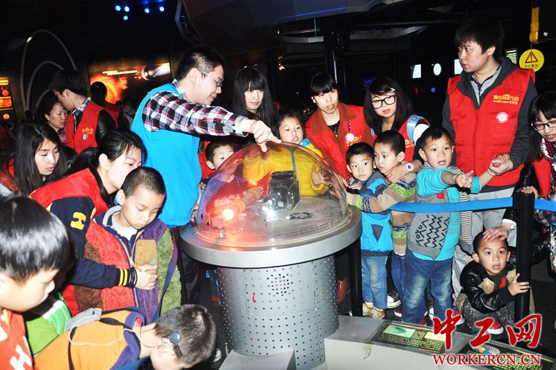 在观影厅里,当一个个宇宙天体从头顶掠过时,孩子们发出一阵阵的欢呼。中工网记者 葛姗 摄